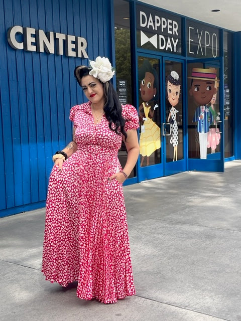 Katharina Dress- Hawaiian Print with Magenta Pink